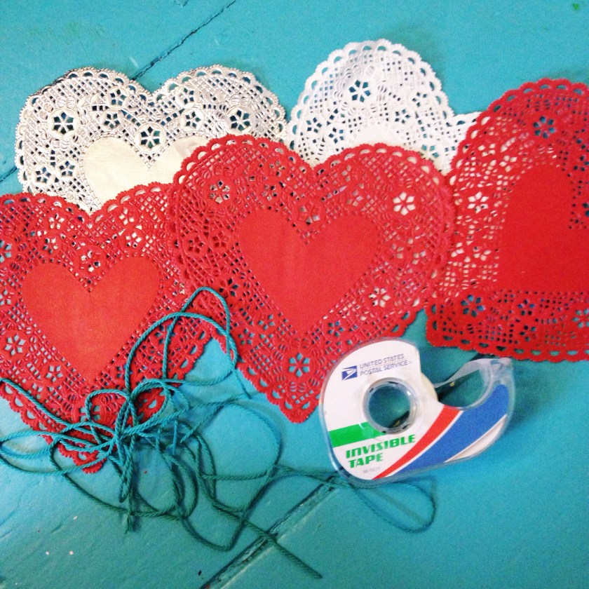 So anyways, since I’m trapped in for the day, why not do a fun craft? Valentine’s Day is only a week from Sunday! I found some doilies in my room, and I had some twine too. I love love loooooove garlands and I think they’re so pretty and fun. So, without further ado, here’s the FIRST Studio Josie craft!