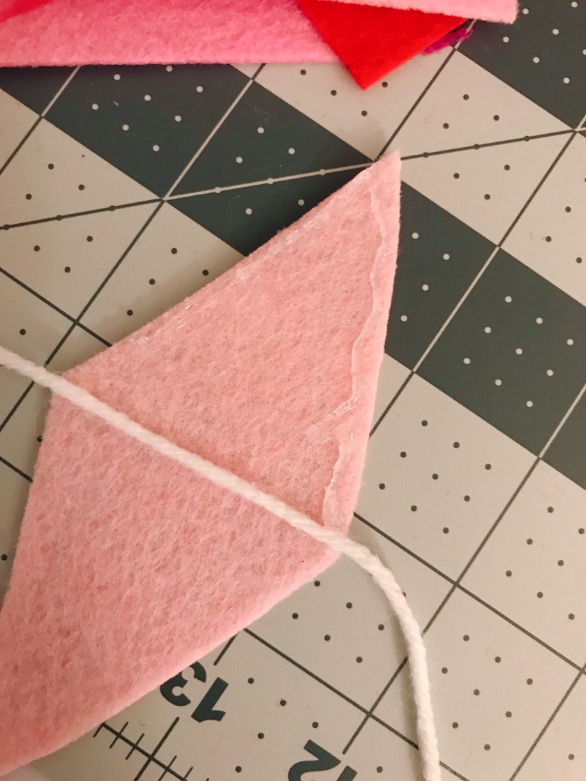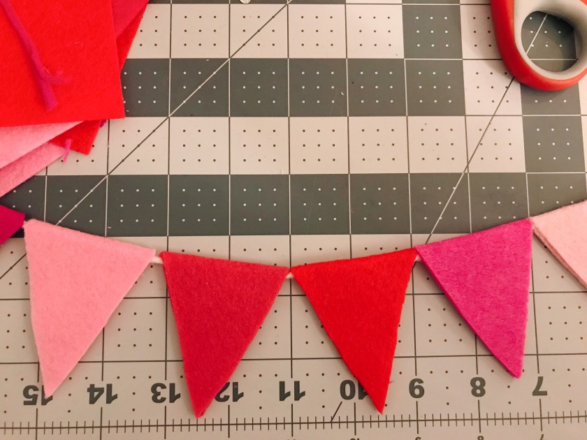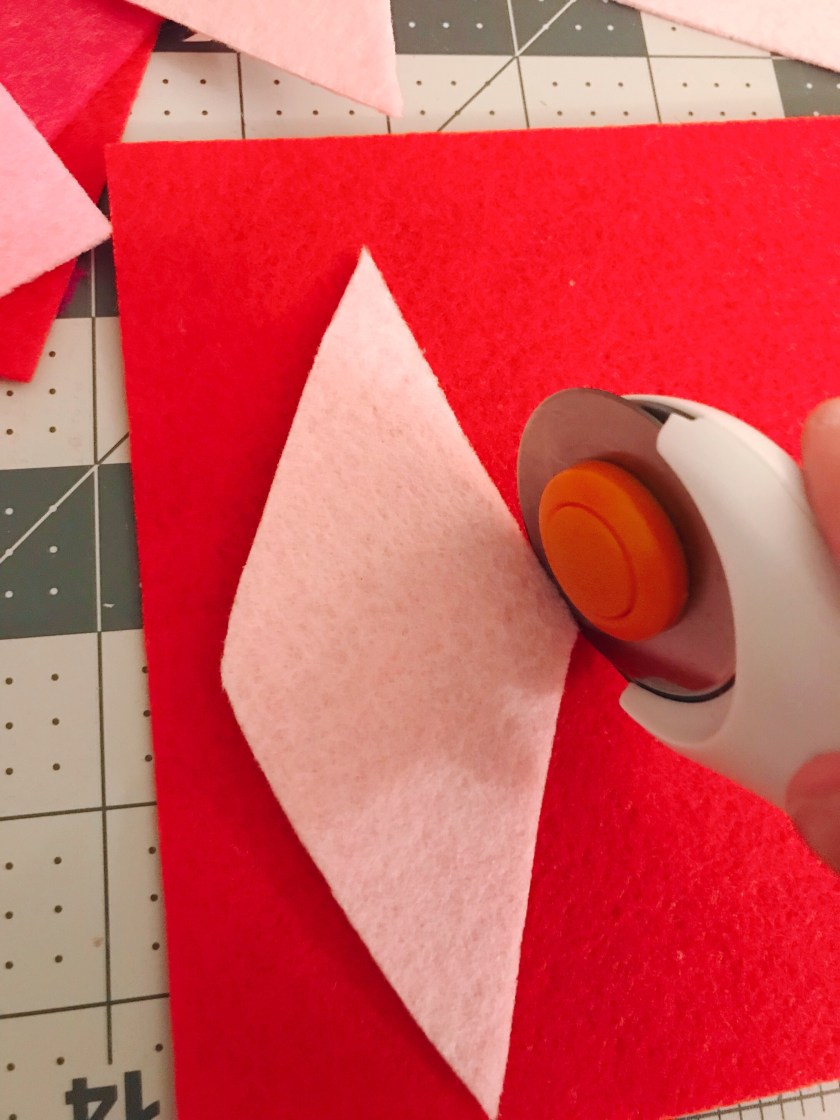 – Felt. You could do this in whatever color combo you’d like, but since Valentine’s Day is around the corner I thought I’d be festive and do a pink/red assortment.