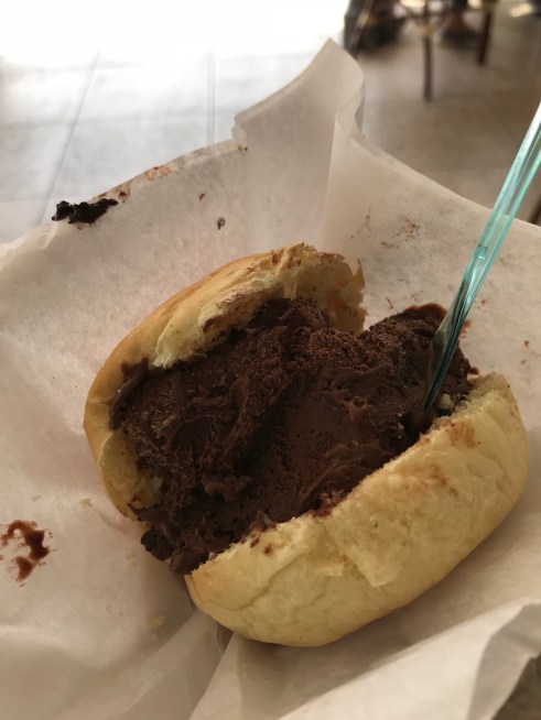 Excuse this unflattering picture, but this is another classic Sicilian treat: gelato in a sweet brioche bun! Mmmmm. One of the best things I ate.