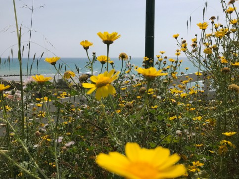 I snuck away from the tour group for a few minutes to take photos of this view with flowers in the foreground.