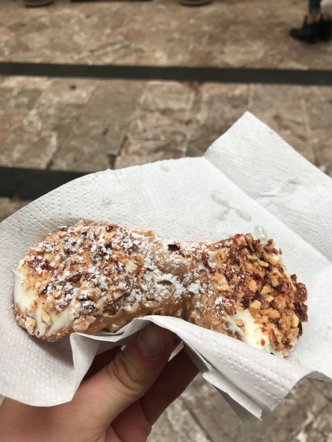 Instead of eating breakfast at the hotel, many of us waited until we got to Taormina to have some cannoli instead. That cannolo was the best I’ve ever had. They put the cream in the shell right in front of you so it doesn’t get soggy, and it’s topped with sweet almond pieces and powdered sugar. It was the flakiest, crunchiest, and most incredible dessert. If you ever find yourself in Taormina, be sure to hit up Roberto’s for a once-in-a-lifetime cannolo. Oh, what I would do to eat one right now! PS: Their torrone is crazy delicious, too.