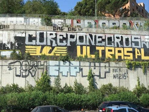 I didn’t sleep too well on the bus, so once we began arriving in Rome I woke up and looked out the window. I noticed a sudden increase in both traffic and street art.