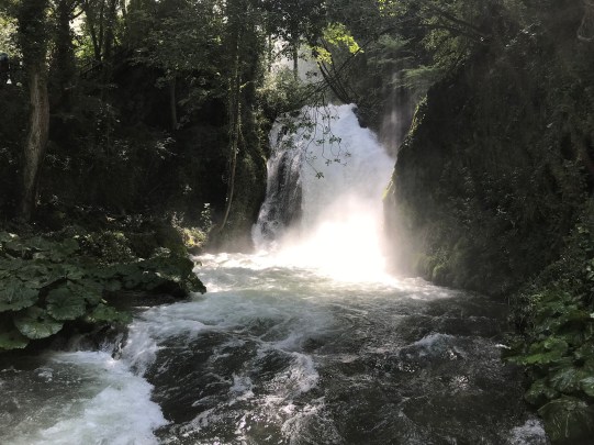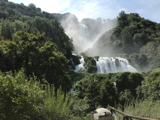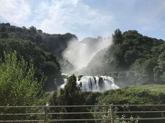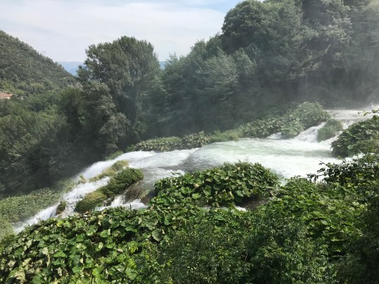 After the matinee, we hopped on a bus and headed to a waterfall: Cascata Delle Marmore. It’s about 30 minutes from Narni and very close to Lazio. Once we arrived, we were told to purchase rain ponchos if we didn’t want to get splashed by the water. I decided not to waste my euros, which ended up being a good thing because I didn’t get too wet anyway…and the water felt so nice in the crazy heat!