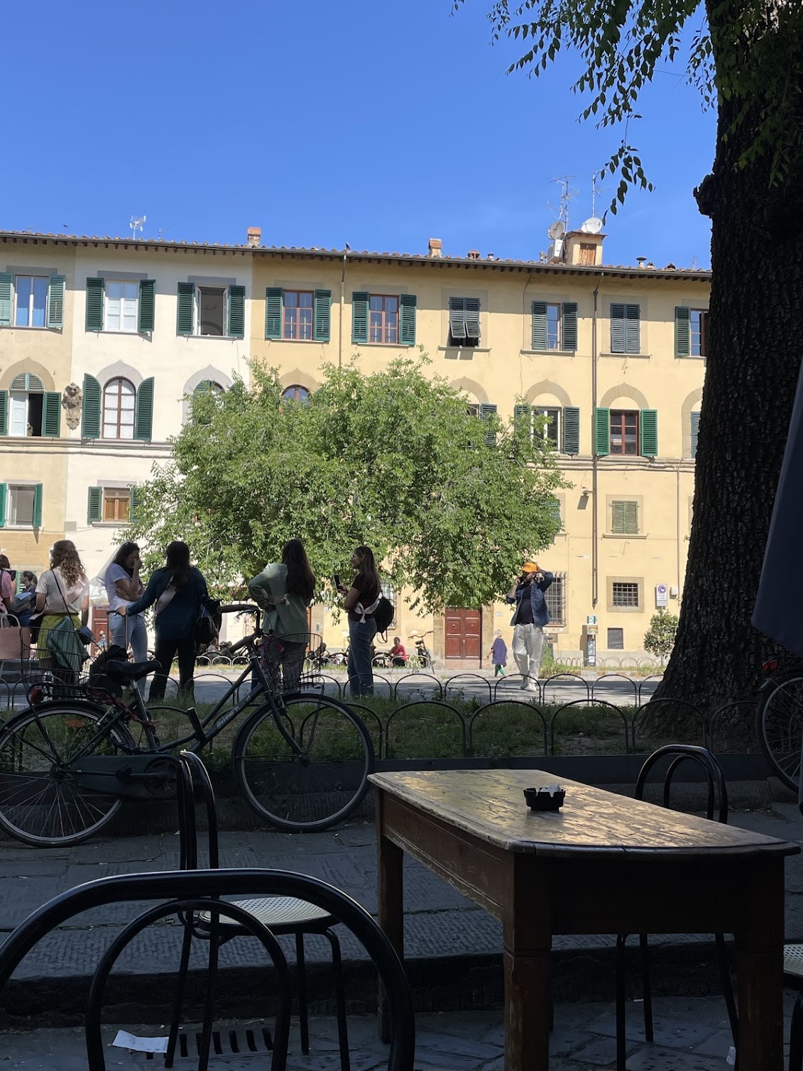 After finishing my coffee, I walked inside to pay and then took a few laps, soaking it all in. Pigeons sat on the head of Cosimo Ridolfi, and children danced around the fountain that sits in the center of the square. The trees cast shadows in all the right places, guarding some people from the sun and avoiding the ones hoping to tan.