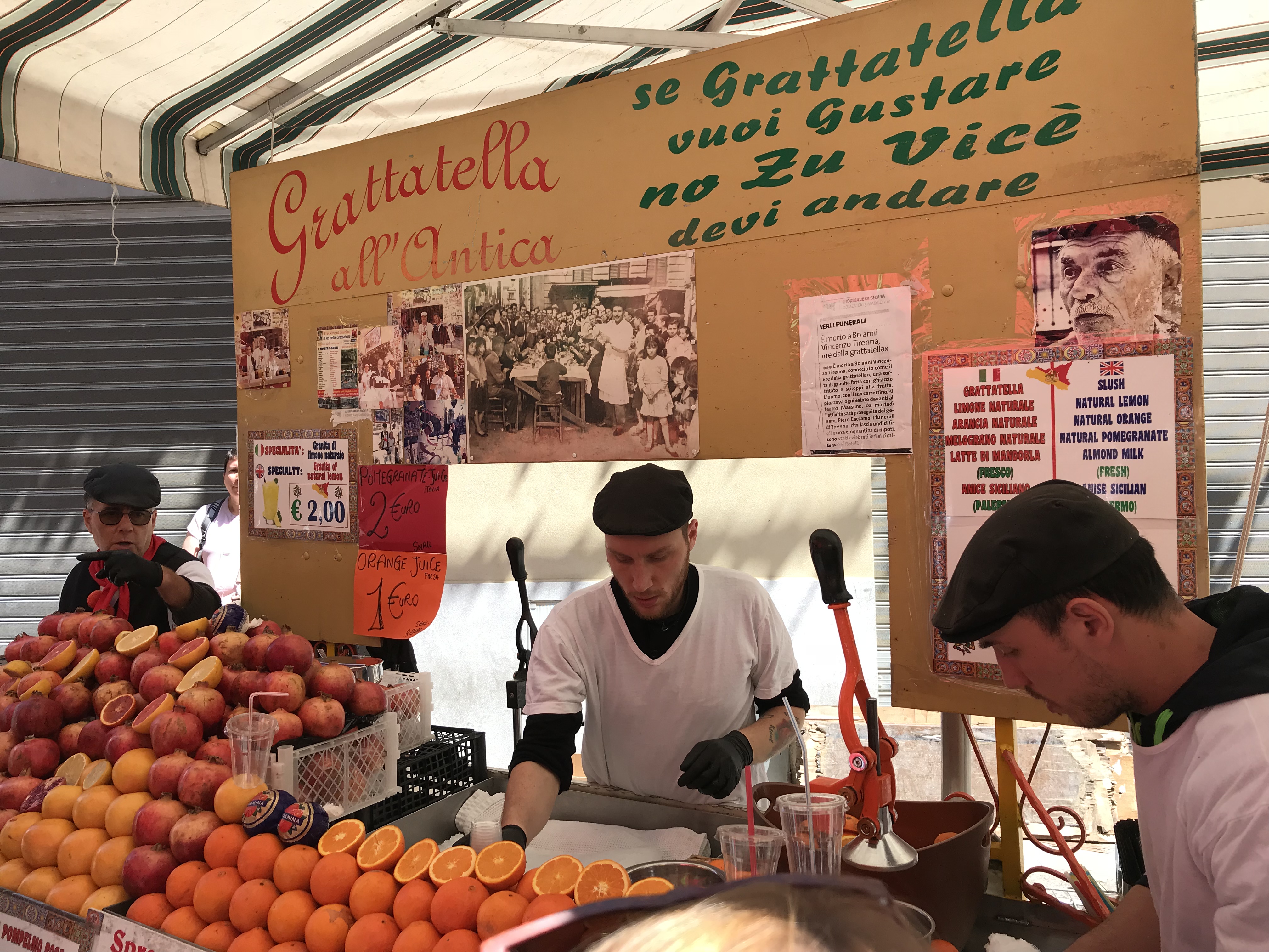 This was a little stand making freshly-squeezed juice from oranges, pomegranates, and lemons. They add it to ice and create the freshest-tasting granita you’ll ever try. There are no machines used here: only their hands, which never stopped to take a break.