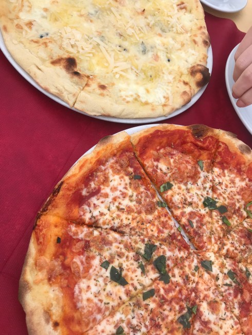 For dinner, we each had a small pizza to ourselves. The weirdest thing happened at this restaurant, too: We were each handed our pizzas, but they weren’t cut into slices! So, we had to use our little butter knives and cut them ourselves. It was quite strange, and everyone was curious as to why they weren’t pre-cut. Despite that, it was so fun sitting down with our whole group on our final day in paradise, even if we were all in a pre-grieving state about leaving.